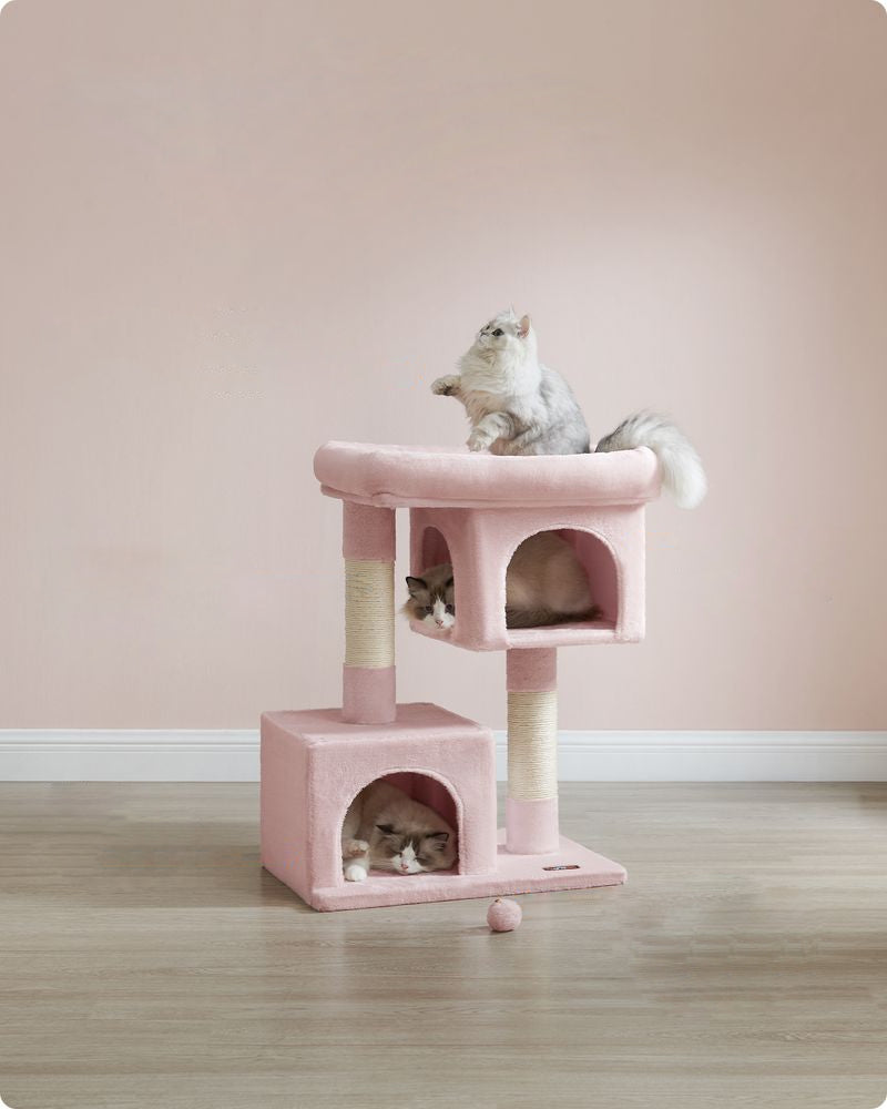 The platform height and spacing: They are crucial factors. A cat tree designed for older cats should have a moderate platform height and spacing. This design consideration makes it easier for these mature felines to climb, jump, and move around freely, without straining their aging bodies.