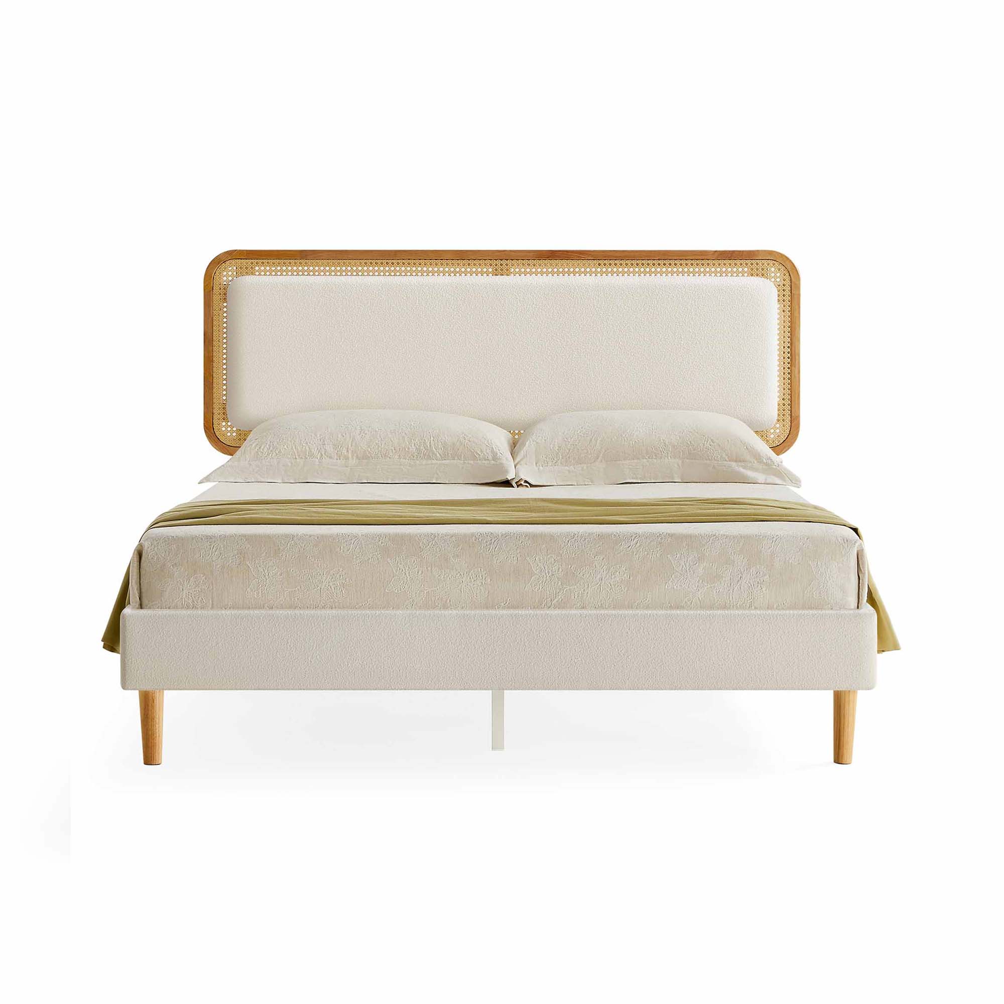 BOHOVEN Collection - Queen Bed Frame with Rattan-Like Adjustable Headboard