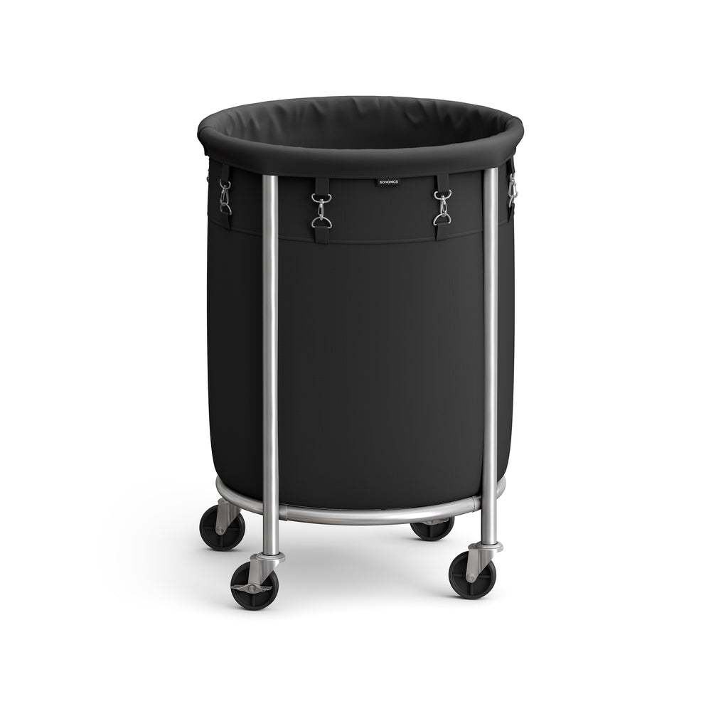 29-Gallon Laundry Basket with 2 Locking Wheels and Removable Bag Charcoal Blue and Metallic Silver