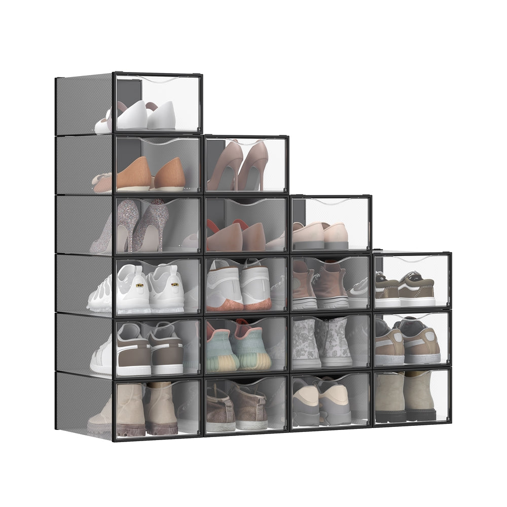 Stackable Shoe Boxes, Set of 18 Plastic Shoe Organizers with Door