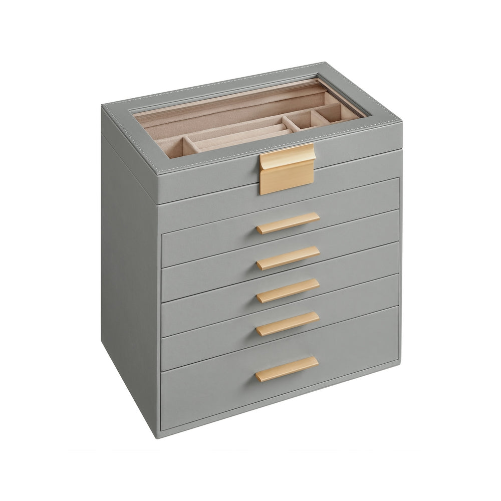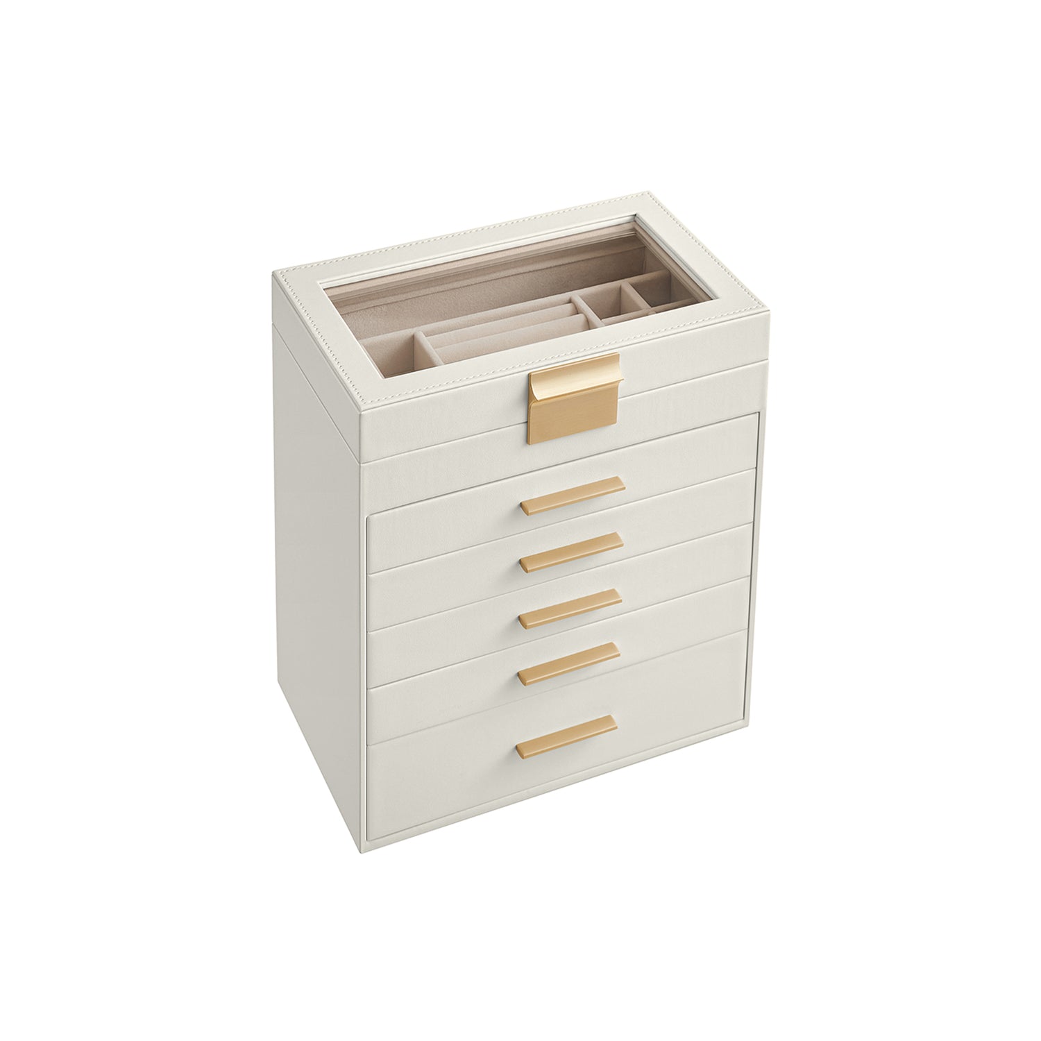 GISELLA Collection - 4-Layer Jewelry Box with Glass Lid for Big Jewelry Cloud White and Gold Color