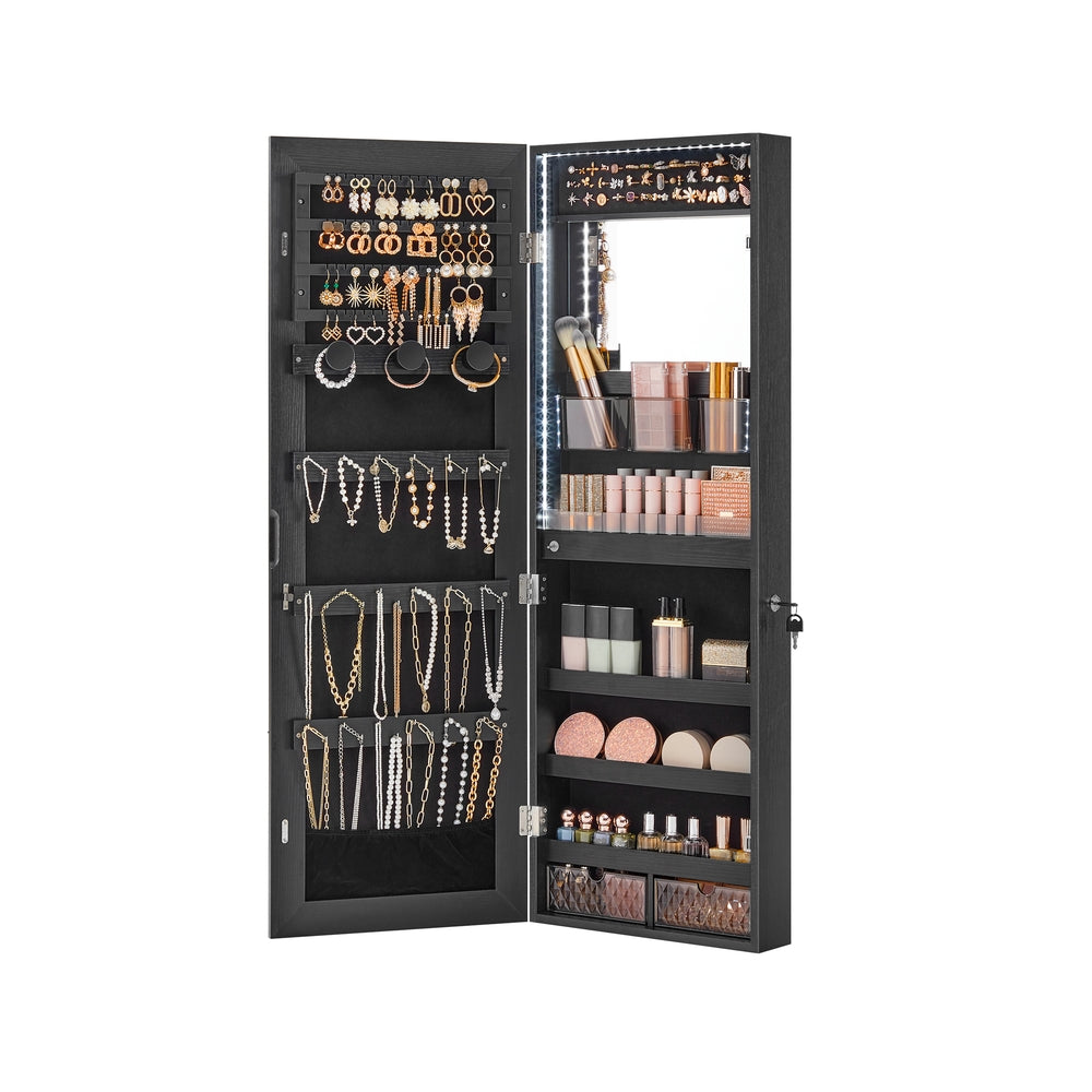 SONGMICS Hanging Jewelry Cabinet Armoire with Built-in Mirror and LED Lights