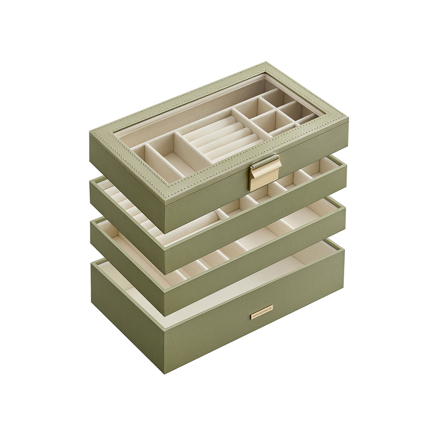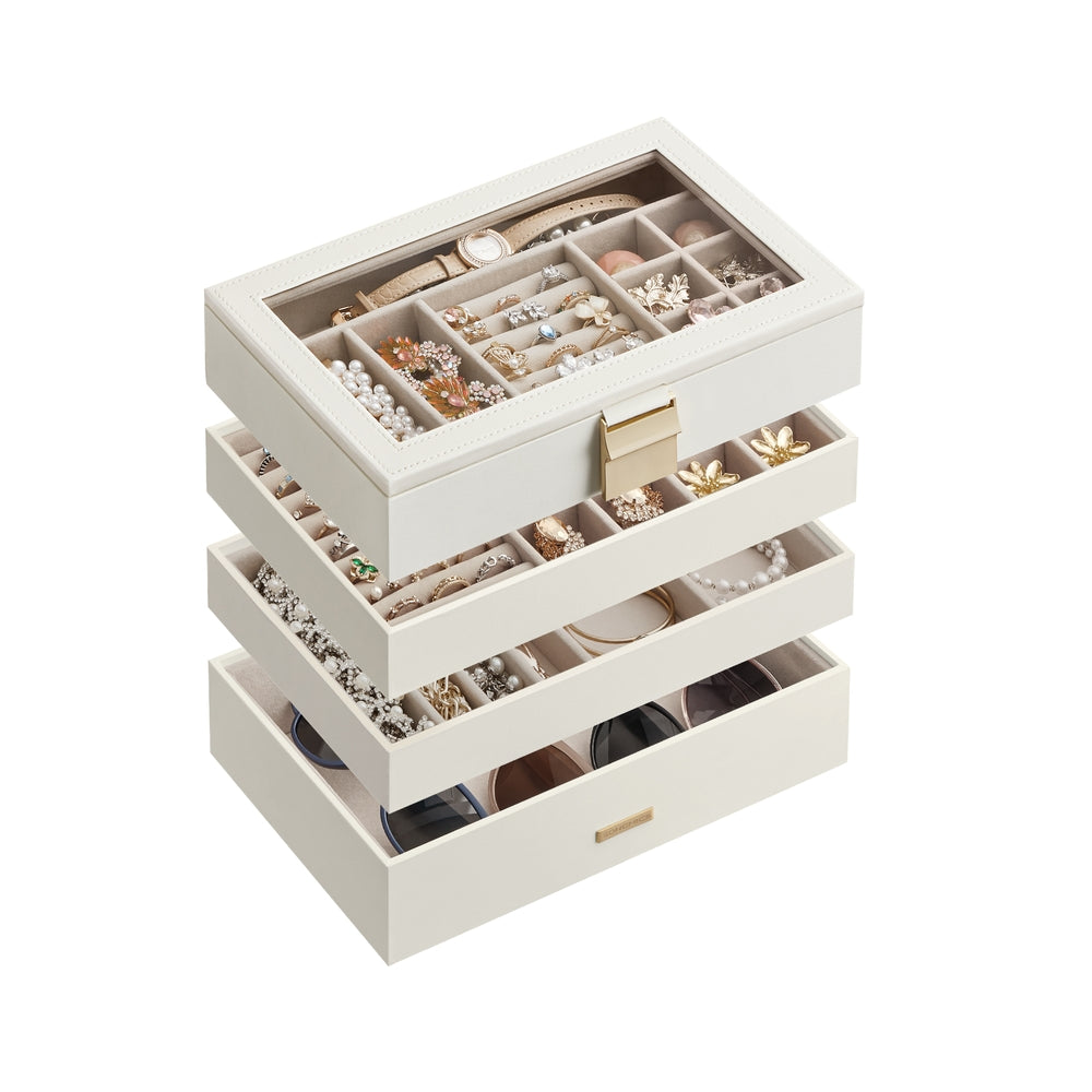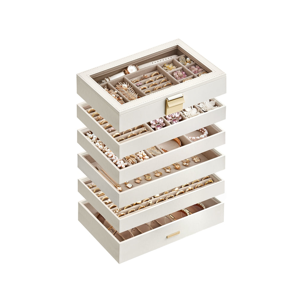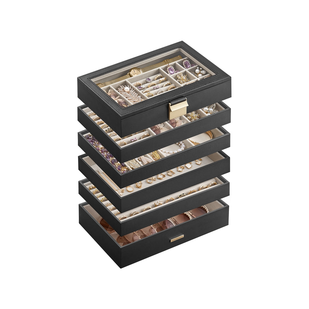SONGMICS Stackable Jewelry Trays with Glass Lid