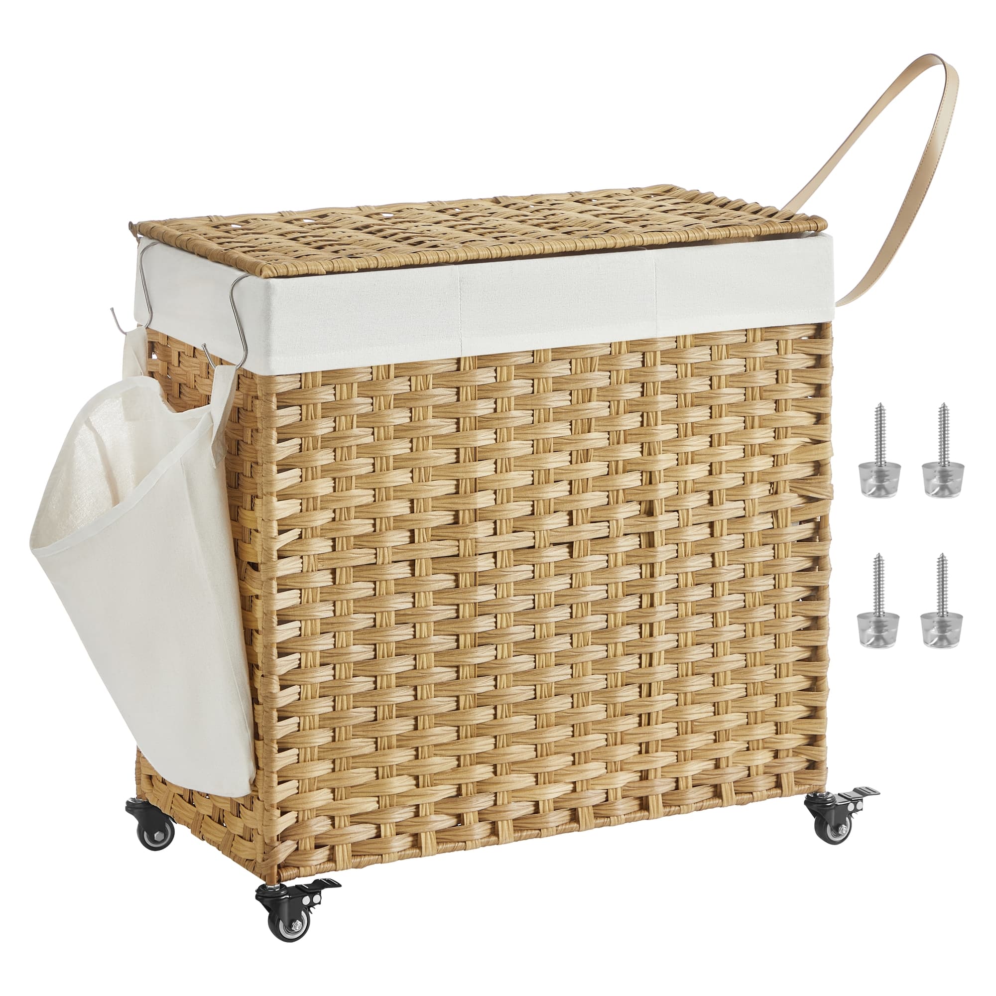 SONGMICS Handwoven Laundry Basket with Wheels