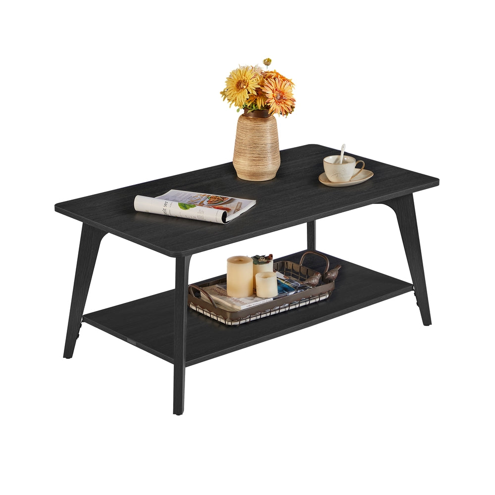 Coffee Table, 2-Tier Living Room Table with Storage, Center Table with Rounded Corners