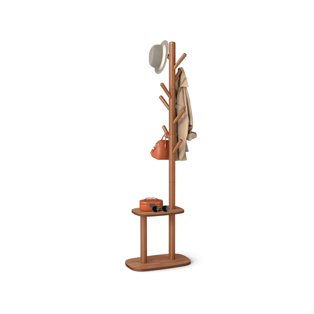 Hall Coat Tree with 8 Hooks and Storage Shelf Caramel Brown