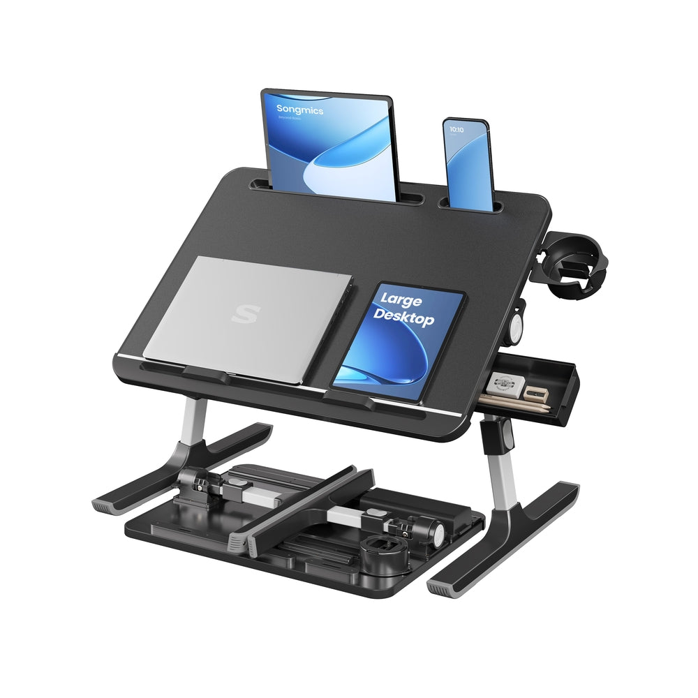 Foldable bed laptop desk with adjustable tilt and cup holder