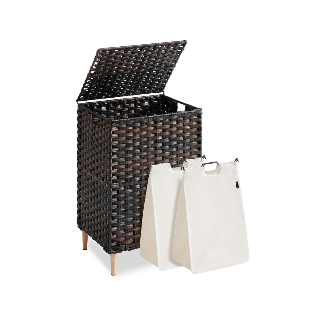 110 L PE Rattan Laundry Basket with Removable Liner and Lid Chestnut Brown