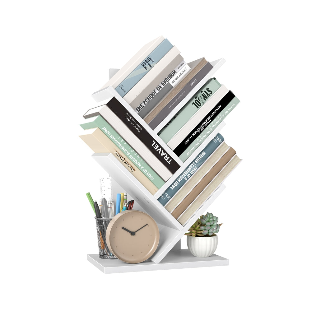 Tree bookshelf with space saving shelves