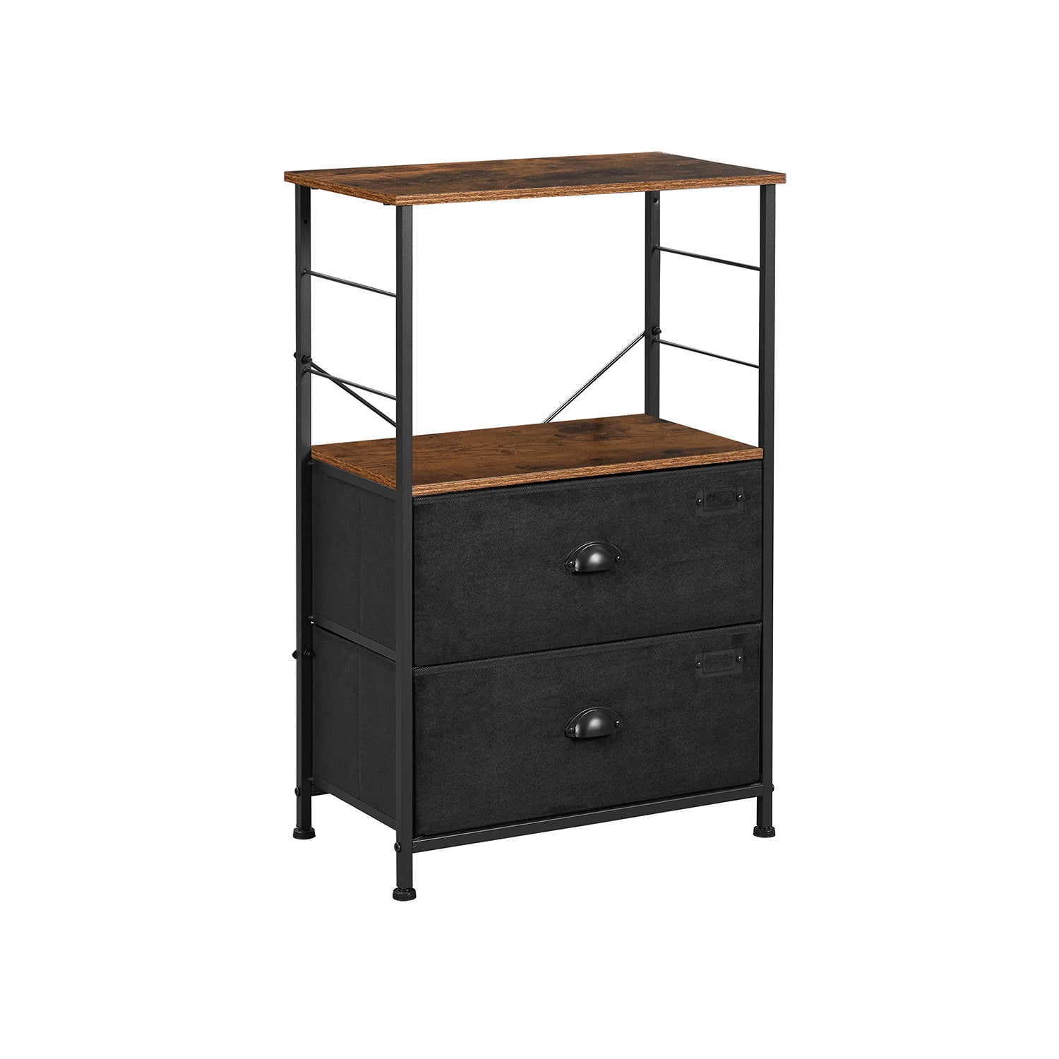 SONGMICS SONGMICS Nightstand, Industrial Bedside Table with 2 Fabric Drawers, Storage Shelves, Vertical Dresser Storage Tower with Wooden Top, Metal Frame, Labels, Rustic Brown and Black ULVT03H