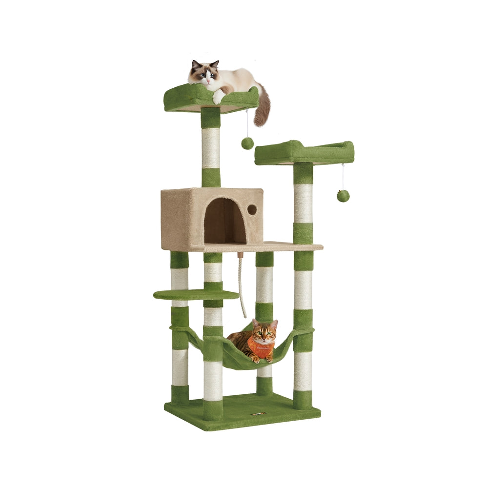 56.3-Inch Cat Tree with Scratching Posts, Hammock, Plush Perch