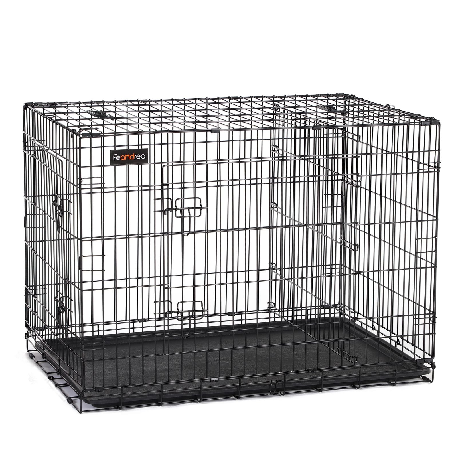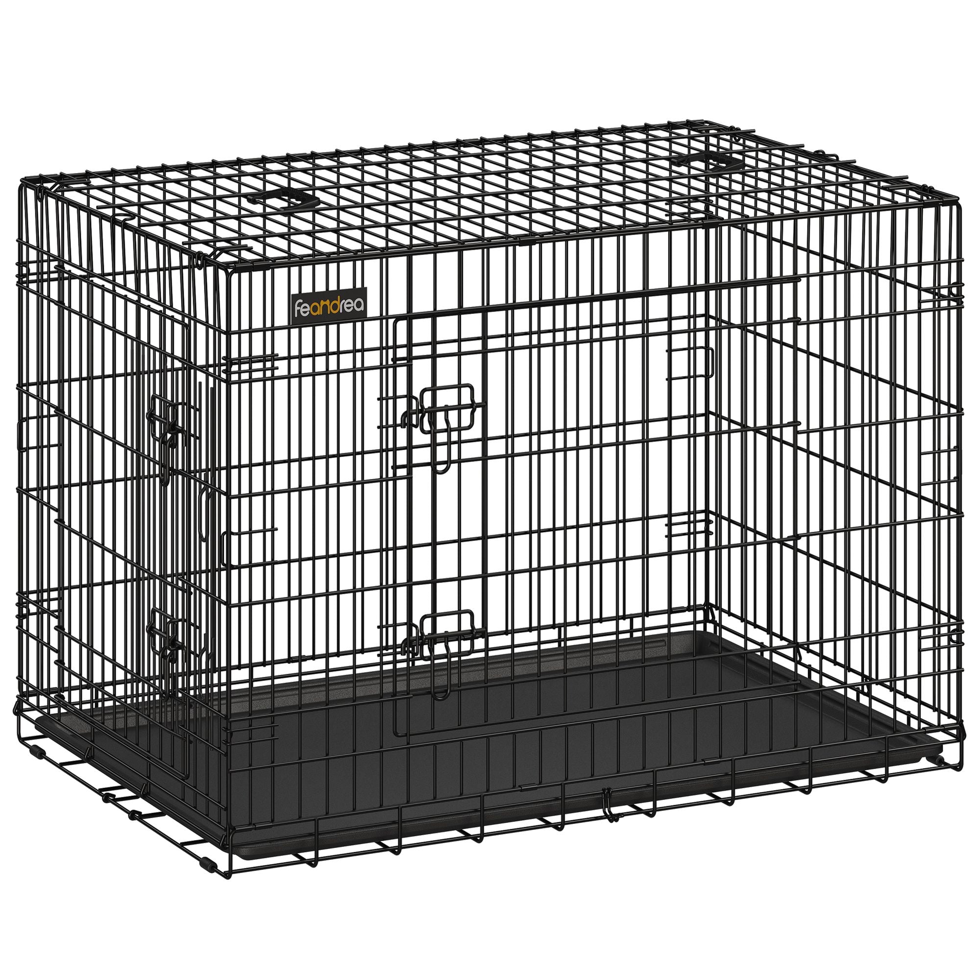 Dog Crate, 36.4-Inch Foldable Dog Kennel with 2 Doors, Adjustable Divider Panel, Removable Tray, Metal Dog Cage
