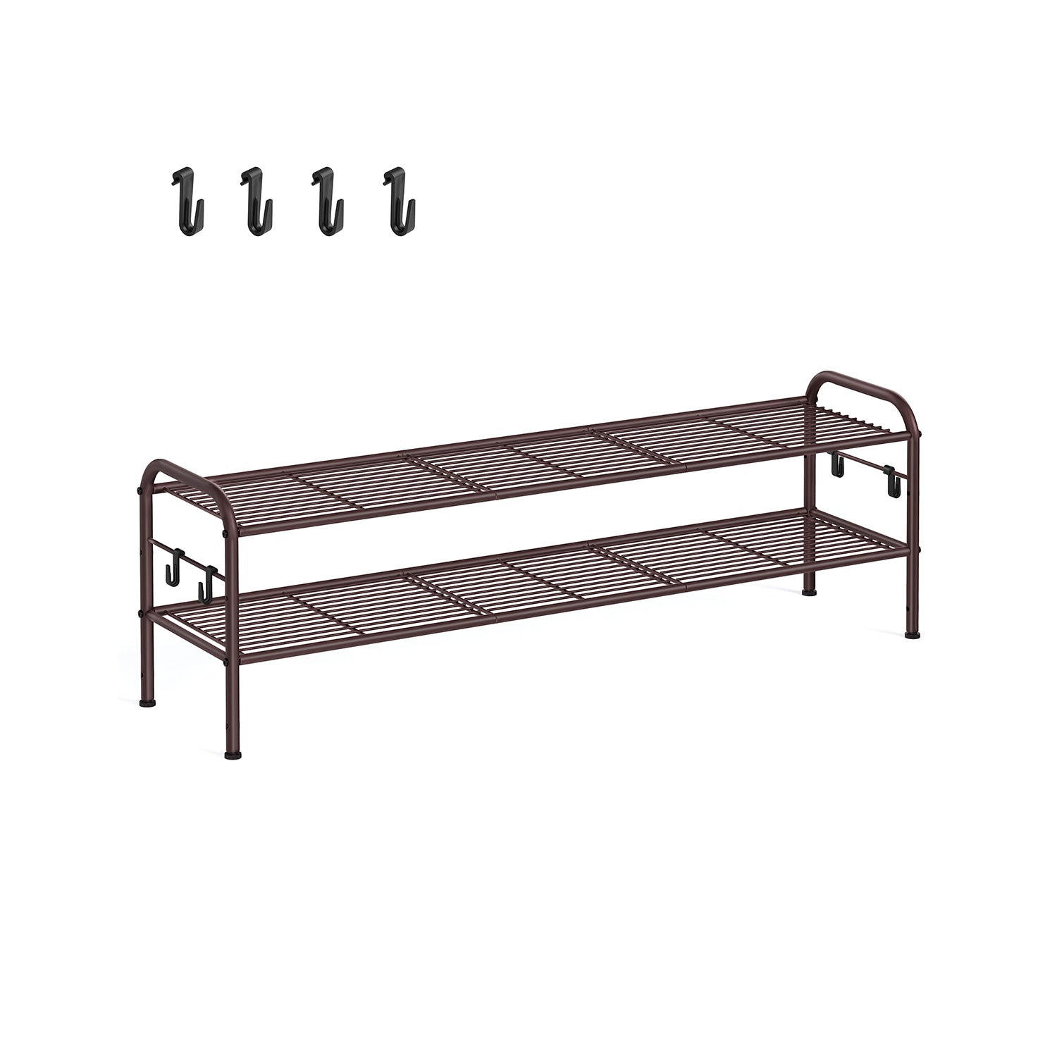 2-Tier Shoe Rack with 4 Side Hooks, Holds 10 Pairs of Shoes