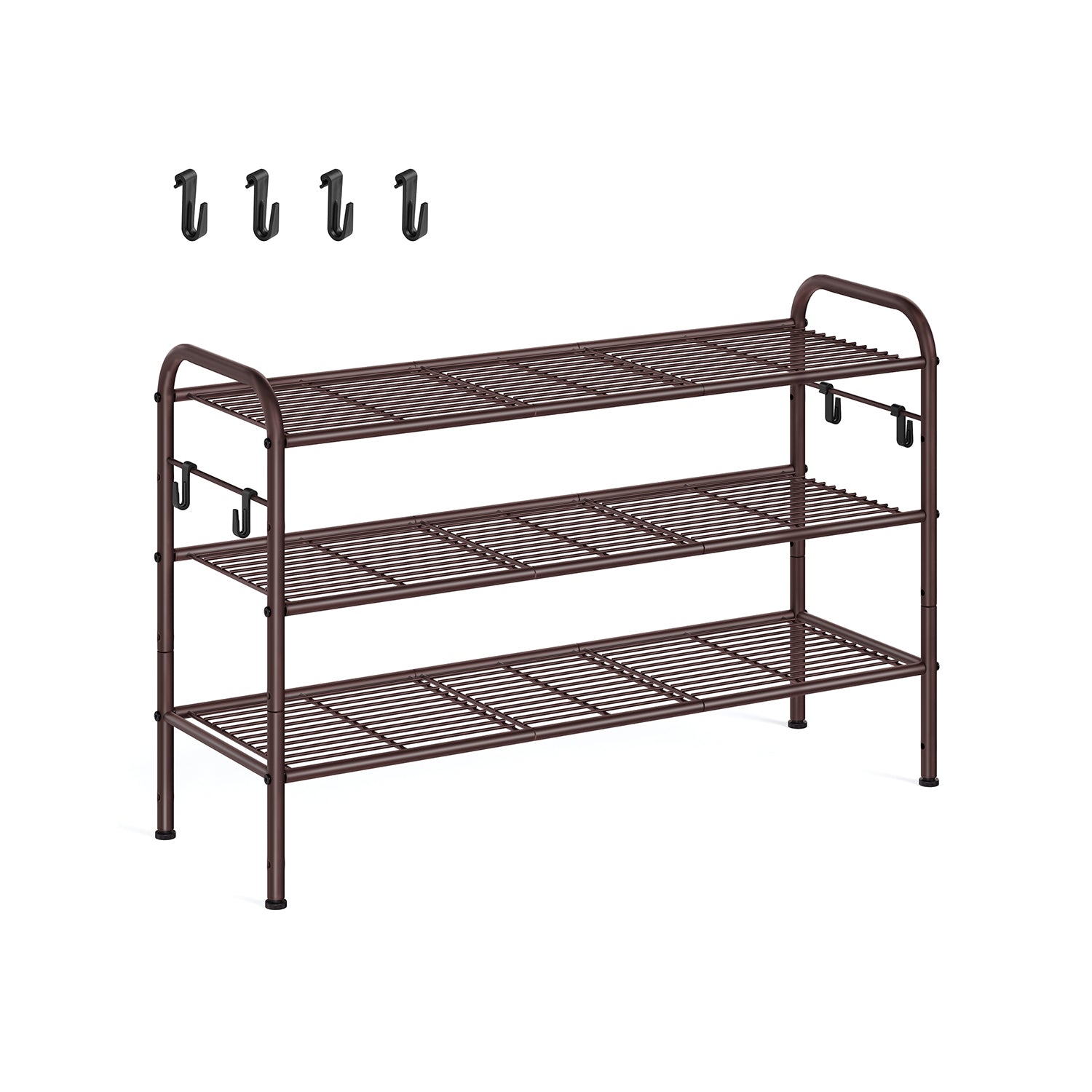 SONGMICS Wide Metal Shoe Rack with Hooks